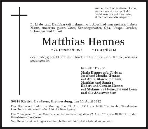 In memoriam Matthias Hennes Die Bilder werden durch Anklicken vergrößert